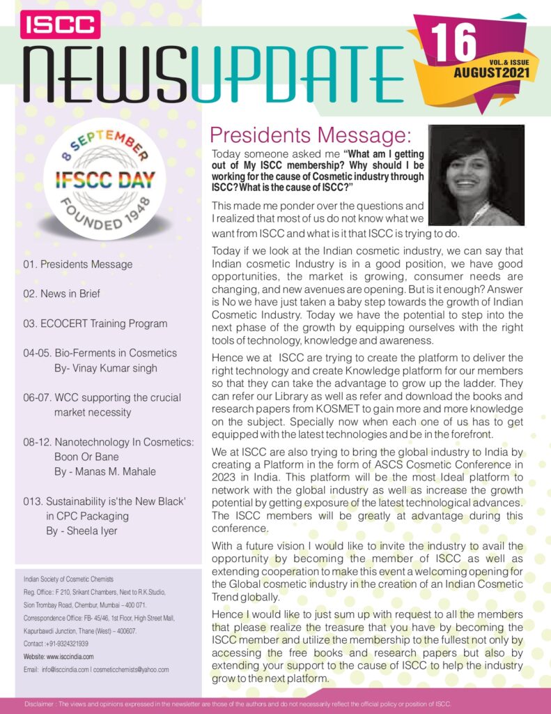 ISCC News Update - A round up of news from India and around world - Volume 16, August 2021